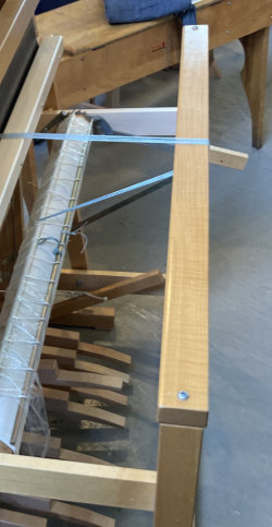 On most newer looms, Leclerc used 2 inch long screws (length of screw shaft excluding screw head) but on some older looms slightly longer 2 1/2 inch screws were used. The longer ones can be used on any Artisat model although the hole depth in the frame may have to be drilled a little deeper if 2 inch screws were originally used. The longer screws may also help in tightening up the Breast Beam if the existing hole has become worn over time.